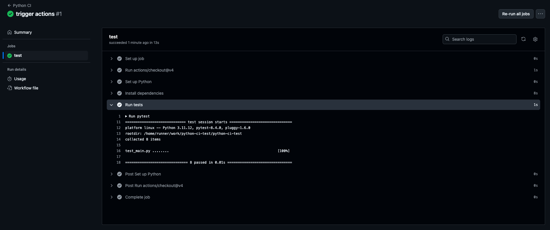 💡 Tip: If your tests don’t pass right away, don’t worry! Use the logs in the Actions tab to see what went wrong. Part of learning CI is learning how to debug when things don’t go perfectly.