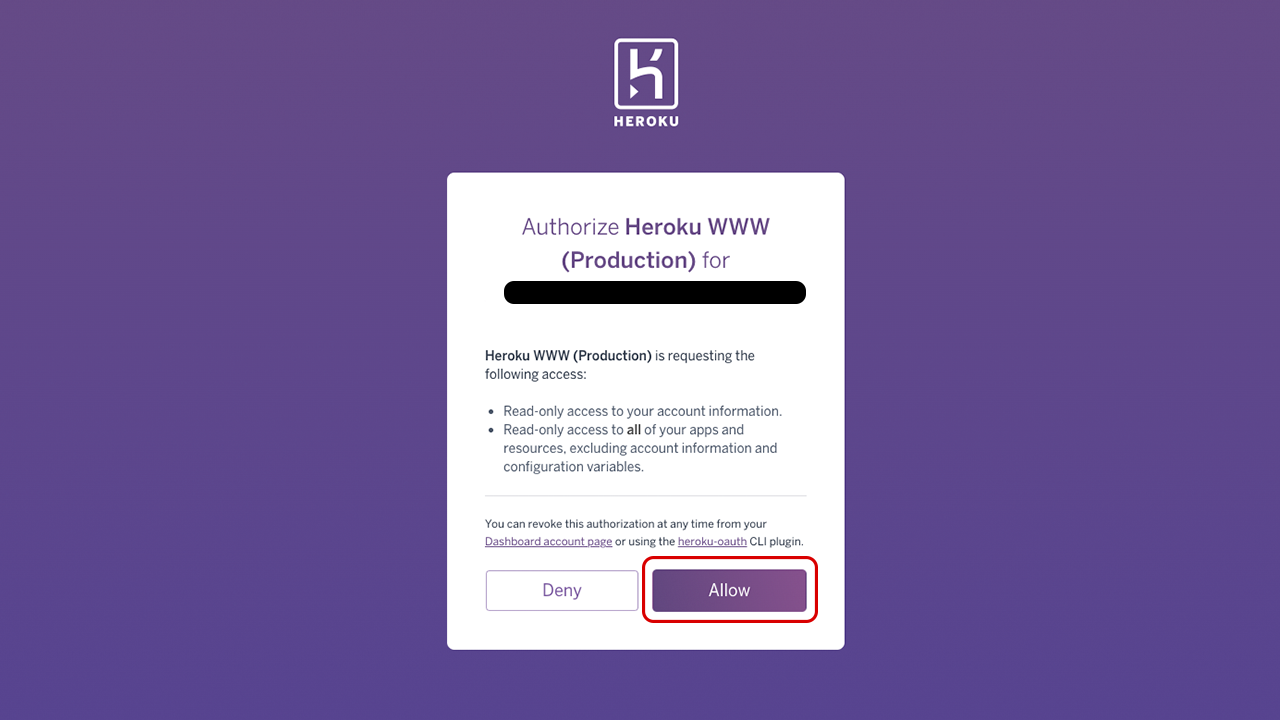 Finally, Heroku may prompt you to authorize Heroku WWW. Click the Allow button to continue.