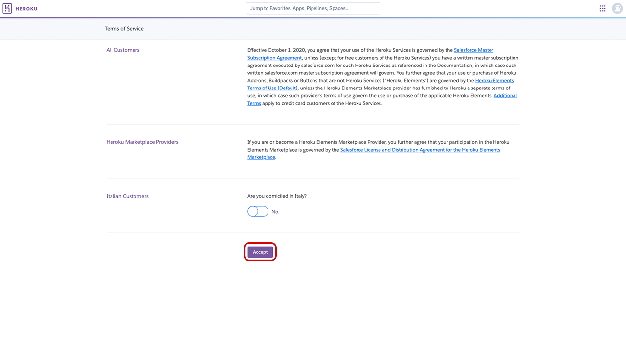 A new page detailing the Terms of Service will appear. Read and accept the terms.