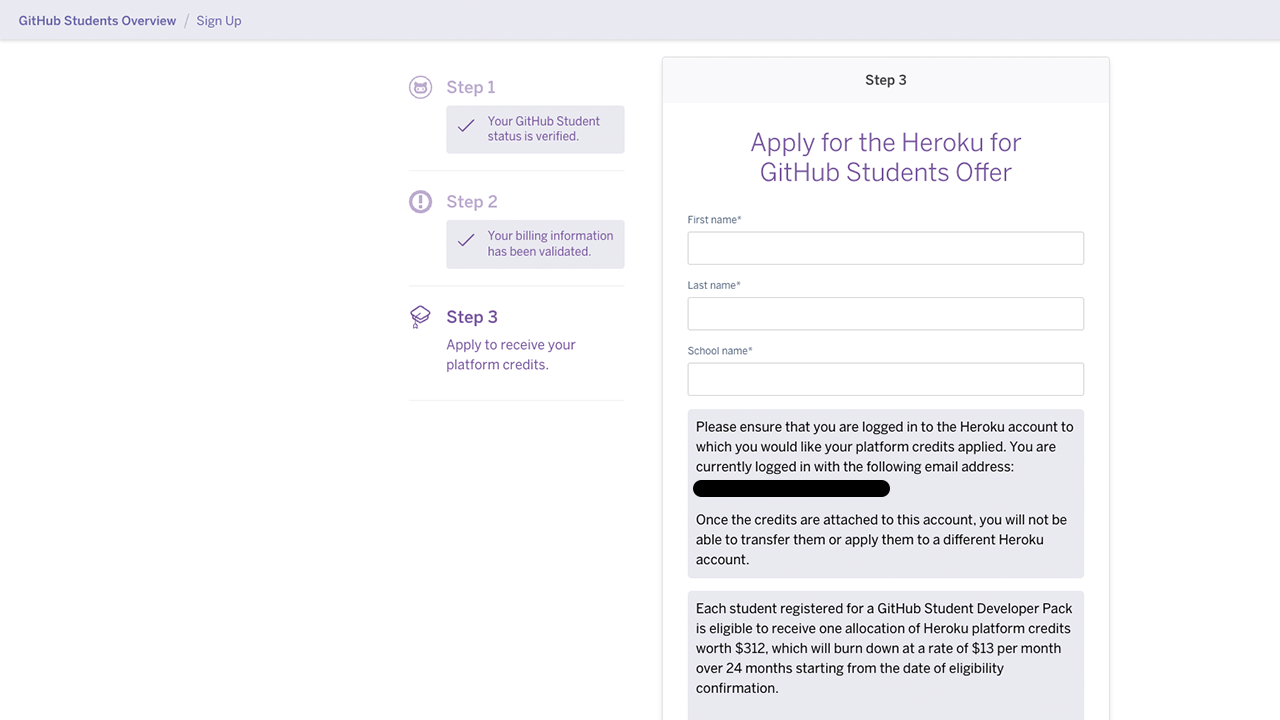 Step 5: Finish the Application for Free Heroku Credits