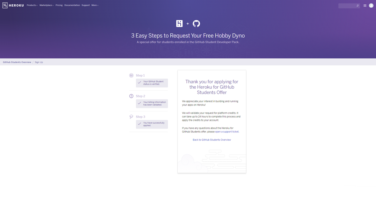 GitHub has partnered with Heroku to give GitHub Students free credits to use Heroku’s services. To access these credits, you must set up a Heroku Account using GitHub Campus. To set up your Heroku Account using GitHub Campus use the walkthrough below.