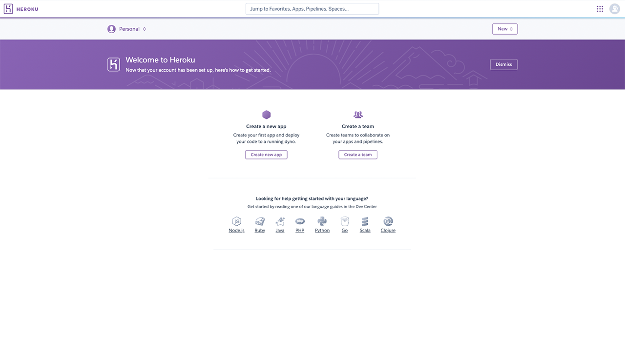 You can now return to your Heroku dashboard if you wish. You can use this dashboard to deploy apps once your credits are approved.