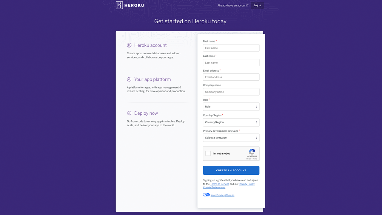 Step 2: Sign Up for a Heroku Account
